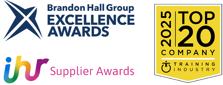 brandon hall group excellence awards ihr supplier awards and 2025 top 202 company for training industry logos